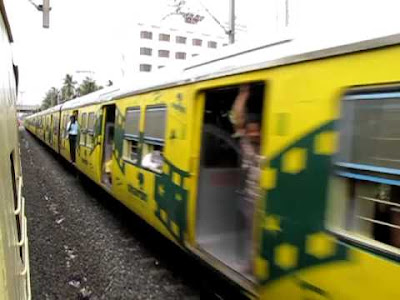 பத்து செகண்ட்லமின்சார ரயிலும் வந்தது.ஓடிபோய் ஒரு கம்பார்ட்மென்ட்ல ஏறி, ‘அப்பாடா “ங்கிறான். பின்னாடியிலிருந்து ஒரு அம்மா “தம்பி, இது லேடீஸ் பெட்டி ,இறங்குப்பா!” என்றார்.பதறி அடித்து இறங்கி பக்கத்து பெட்டிக்குள் போனால்,அங்கே நாலைந்து சரவணன்ன ஏற இறங்க பார்த்துட்டு கண்டிப்பா இவன் இந்த பெட்டி ஆள் இல்லேன்னு ஒரு கெஸ்பண்ணிட்டாங்க.ஹலோஇது பர்ஸ்ட் கிளாஸ்பா"ன்னு கோரஸ் பாடினார்கள்.மறுபடி இறங்கி அடுத்த பெட்டிக்கு ஏறுவதற்க்குள் ரயில் நகரஆரம்பிச்சிடுச்சு,அப்படி இப்படின்னு நெரிச்சுத்தள்ளி ஏறி கஷ்டப்பட்டு ஒரு கம்பிய பக்கத்து பயணியோட ஷேர் பண்ணிபிடிச்சு,ஒரு வழியா ரயிலுக்குள் செட்டில் ஆனான் சரவணன்.